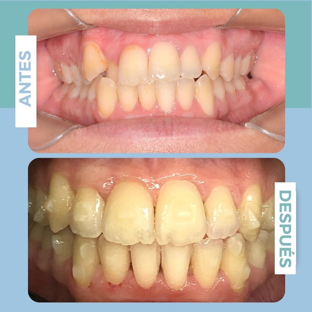 Paciente que está en tratamiento de Invisalign, progreso de diente lateral a palatino en 5 meses de tratamiento. Aún falta terminar pero estamos felices con su logro, la paciente nos dice que esta aprendiendo a sonreír ya que antes no lo hacía.